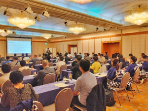 一日目は、宝塚温泉ホテル若水を会場として、研修会、宴会、二次会、三次会を行いました。まず、研修会では、「生成AI の登場により知財実務はどのように変革されるのか~特許明細書作成・商標願書作成への活用について事例を踏まえながら紹介~」と題として、弁理士の湯浅竜先生に、時流を踏まえた大変有意義で示唆に富むご講義を行っていただきました。