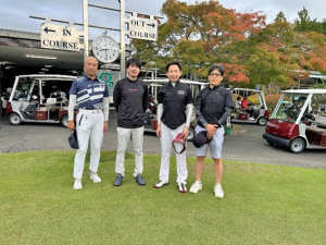 二日目は、観光組、宝塚歌劇組、ゴルフ組、自由行動組に分かれて、それぞれ行動しました。観光組は13名で、まず、手塚治虫記念館を鑑賞し、次に、宝塚ワシントンホテルで昼食を採り、最後に、JR 福知山線廃線敷をハイキングしました。ハイキングの時間帯に雨が降りそうでしたが、幸い何とか天気が持ち、また、丁度良い気温でした。歩きながら自然を味わい会話を楽しんだり、モルックの熱戦を繰り広げたりしつつ、心地良い疲労感と共に旅程を終えました。宝塚歌劇組は、直前のチケット追加手配が叶い、総勢11名で観劇しました。この機に初観劇という方が大半でしたが、お芝居・ショー双方で宙組生の客席降りがあった他、娘役群舞、男役の黒燕尾、トップコンビのデュエットダンス、大羽根を背負っての大階段降り等々、オーソドックスな宝塚歌劇の世界も堪能することができました。ゴルフ組は、湯浅先生を含めた4名でラウンドしました。狭くて起伏のあるコースに皆苦戦しましたが、天気とメンバーに恵まれ、大変楽しいラウンドとなりました。