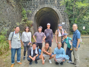 二日目は、観光組、宝塚歌劇組、ゴルフ組、自由行動組に分かれて、それぞれ行動しました。観光組は13名で、まず、手塚治虫記念館を鑑賞し、次に、宝塚ワシントンホテルで昼食を採り、最後に、JR 福知山線廃線敷をハイキングしました。ハイキングの時間帯に雨が降りそうでしたが、幸い何とか天気が持ち、また、丁度良い気温でした。歩きながら自然を味わい会話を楽しんだり、モルックの熱戦を繰り広げたりしつつ、心地良い疲労感と共に旅程を終えました。宝塚歌劇組は、直前のチケット追加手配が叶い、総勢11名で観劇しました。この機に初観劇という方が大半でしたが、お芝居・ショー双方で宙組生の客席降りがあった他、娘役群舞、男役の黒燕尾、トップコンビのデュエットダンス、大羽根を背負っての大階段降り等々、オーソドックスな宝塚歌劇の世界も堪能することができました。ゴルフ組は、湯浅先生を含めた4名でラウンドしました。狭くて起伏のあるコースに皆苦戦しましたが、天気とメンバーに恵まれ、大変楽しいラウンドとなりました。